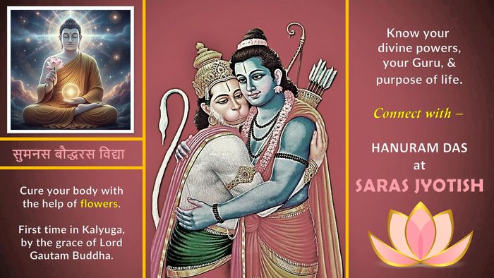 By the grace of Shri Hanuman Ji, after meeting Mata Saraswati Ji as my astrology mentor, one day I pleaded cosmic planet Mercury to give me a remedy for my sister who was suffering for more than 5 years with nervous system pain in her left arm and shoulder side. For these many years she was on medication to eliminate her suffering. As I know that nervous system is related to planet Mercury in astrology, so I pleaded Mercury, and sat in meditating pose. Then during my sitting, I received the first ever knowledge of a typical flower from Lord Gautam Buddha Ji as a treatment for my sister. Miraculously, flower surprised her with the amount of relief she received after consuming it. And this embarked my journey of Flower Therapy known as "सुमनस-बौद्धरस विद्या".